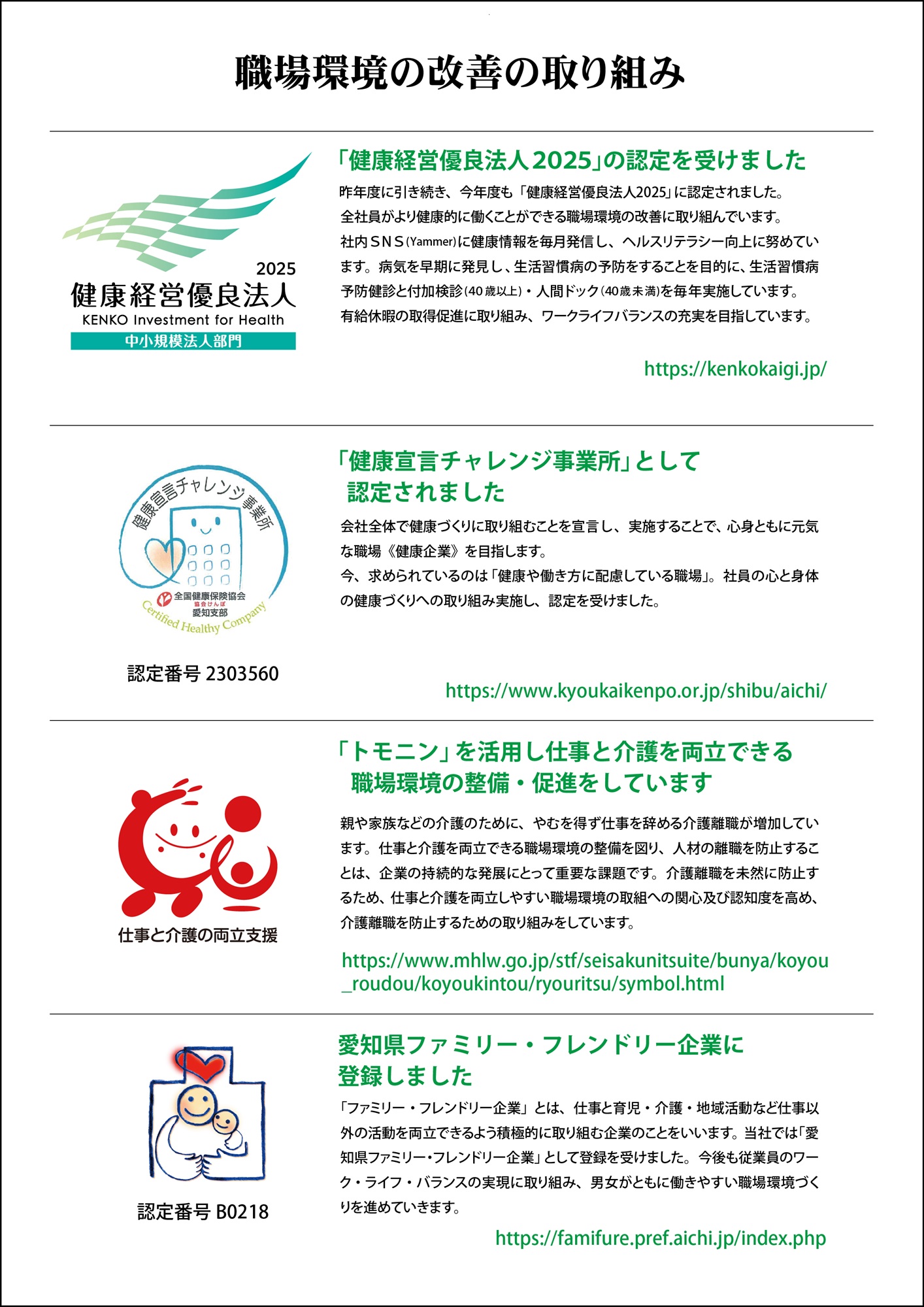 昨年度に引き続き、今年度も「健康経営優良法人2025」に認定されました。