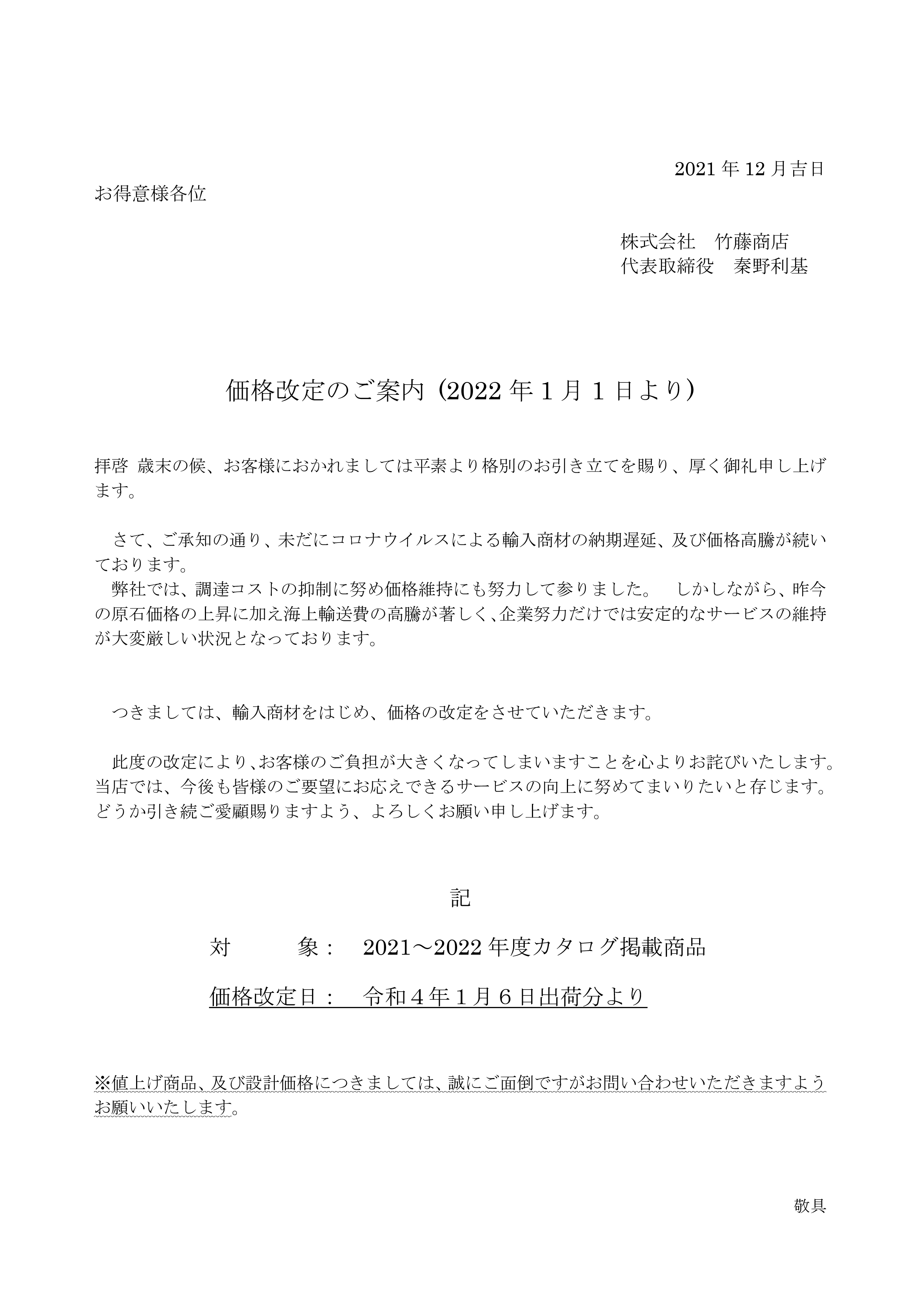 価格改定のお知らせ