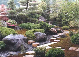 客間より右よりに滝口を作り、黒那智石の流れを取り入れた和風庭園