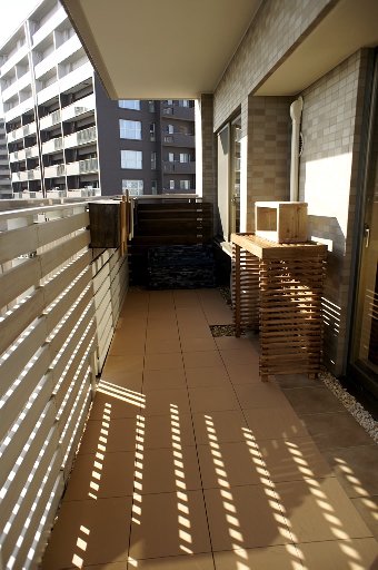 猫を愛するご夫妻が購入したマンションのベランダ。