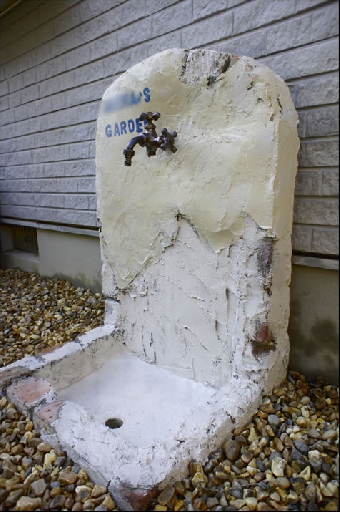 水回りにも同レンガで囲み、砂利には英国産ゴールデンを使用しました。