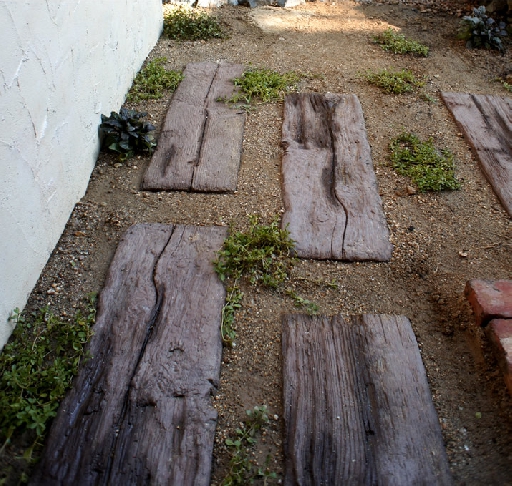 お庭リフォームで施工した擬木枕木のアプローチ。